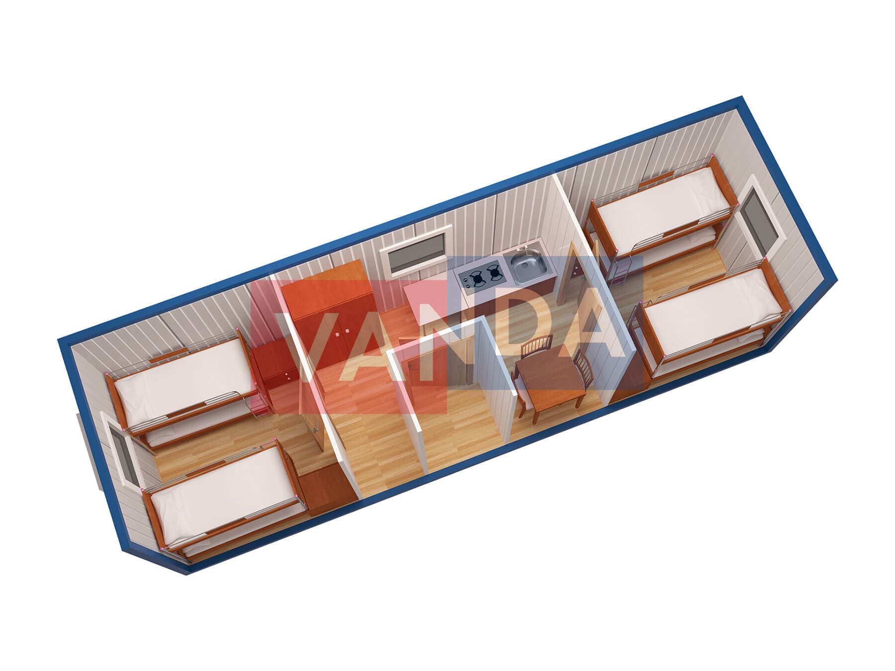 Металлическая бытовка без тамбура 5,85 x 2,4 - Вагонка ПВХ